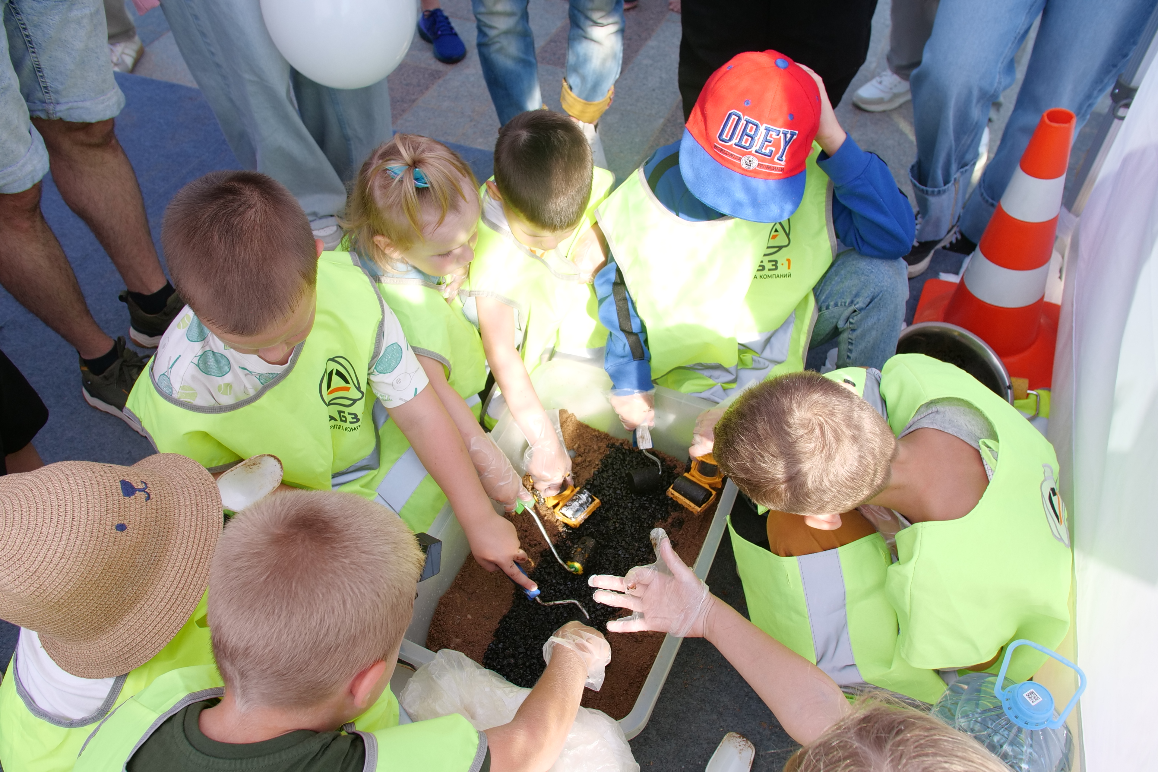 За два дня сотрудники центральной лаборатории «АБЗ-1» провели 11 мастер-классов для детей «Дорога своими руками». Процесс был организован так же, как на реальных объектах: у команды был бригадир в лице инженера лаборатории, он проводил инструктаж о правилах безопасности, все участники «работ» были в экипировочных жилетах и перчатках.